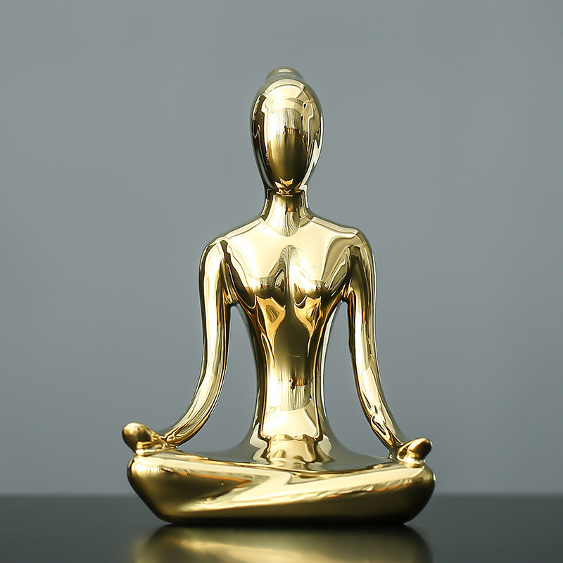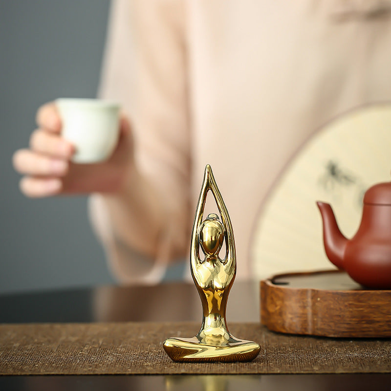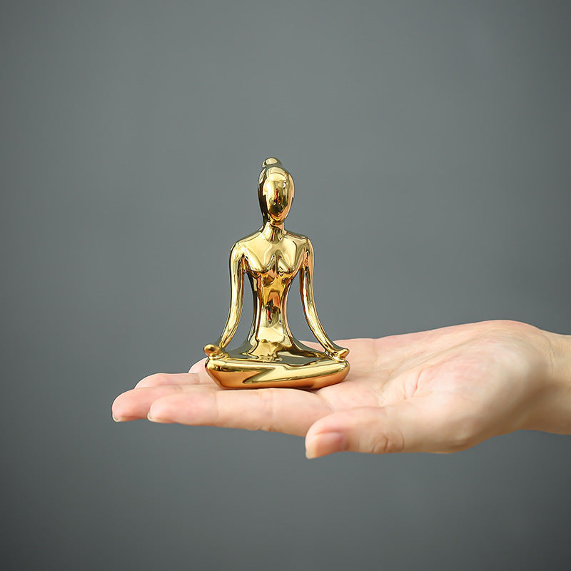 Crafted from ceramic with a smooth gold-plated finish, it features a graceful yoga pose that reflects mindfulness and inner peace.
